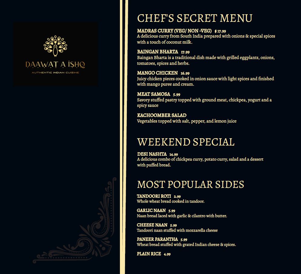 Daawat a Ishq Menu (Update 2025)
